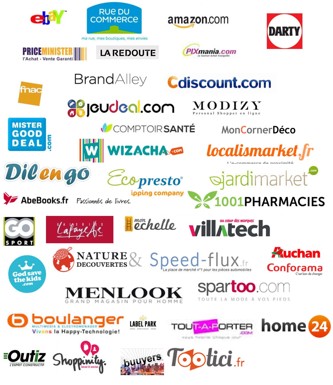 Nous travaillons avec de nombreuses les places de marché (Amazon, Rue du commere, Cdiscount, Ebay, Darty, Fnac, ManoMano, Rakuten, Auchan, Boulanger, Galerie Lafayette, Intermarché, etc.)